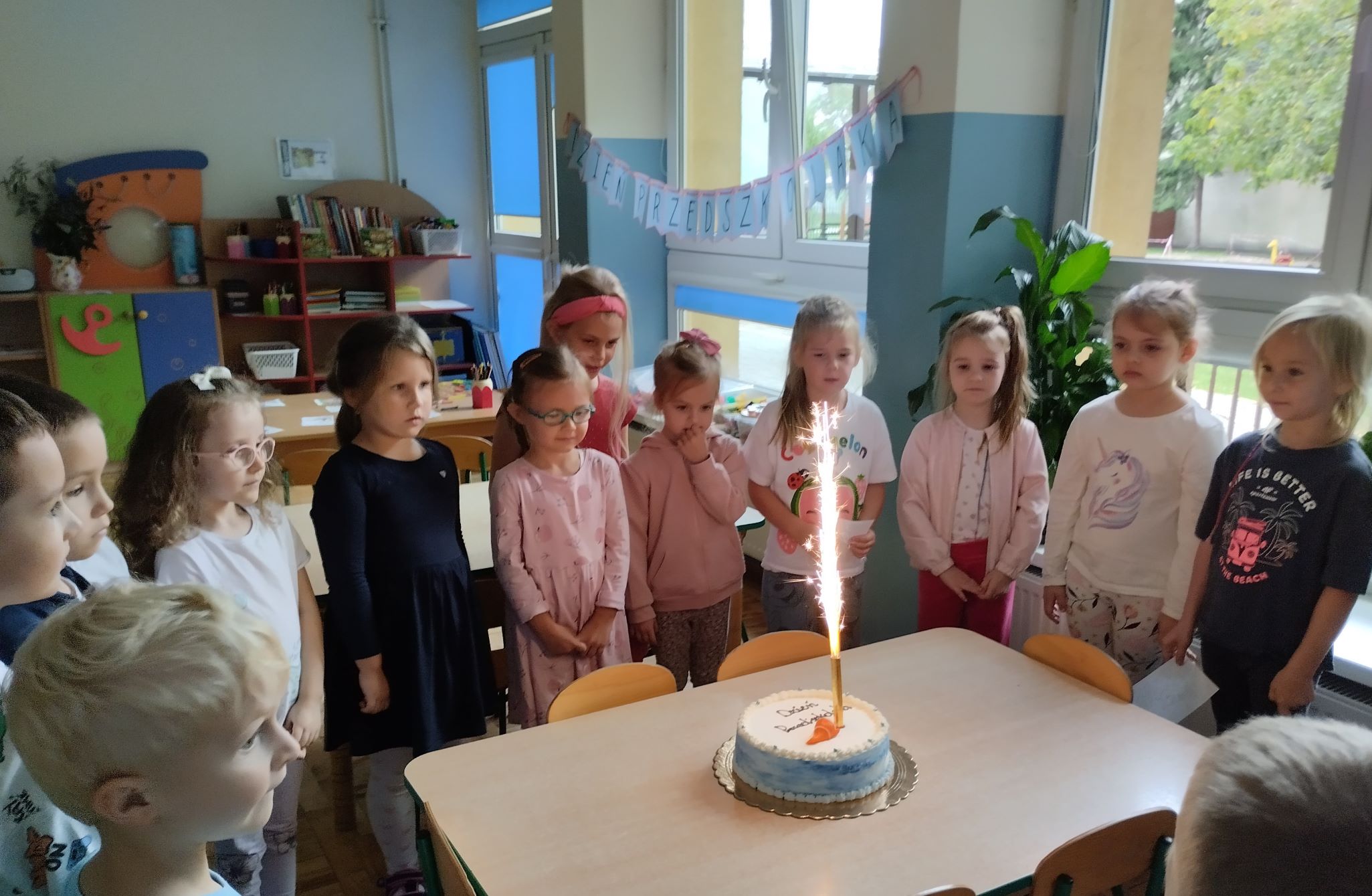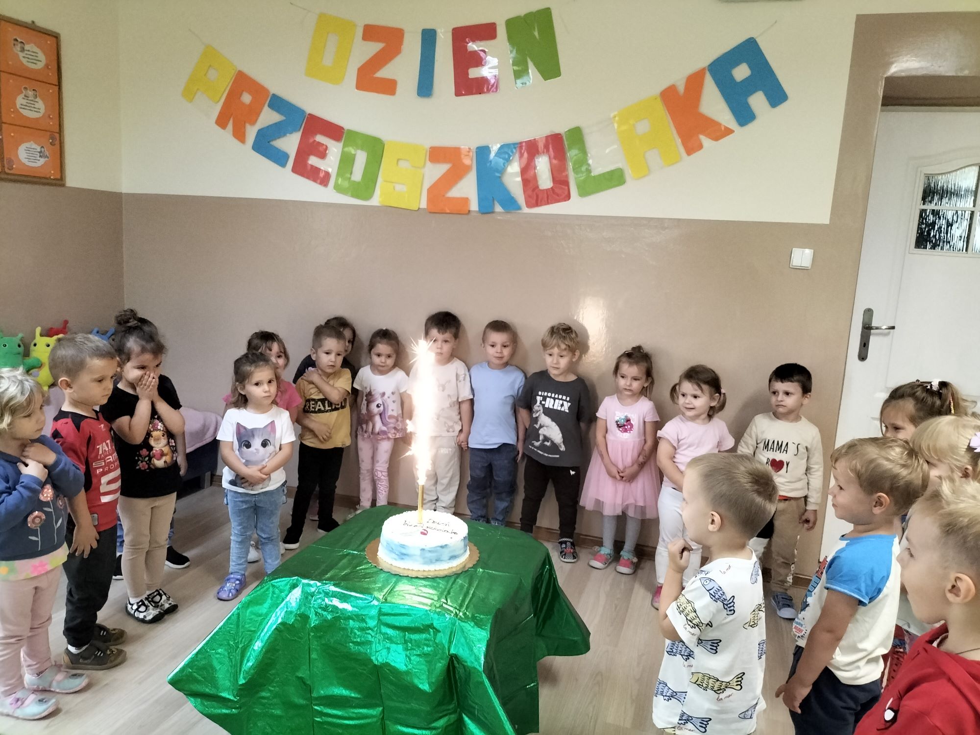 Dzień Przedszkolaka w naszym przedszkolu był pełen radości i wrażeń. Dzieci obejrzały wyjątkowe przedstawienie „Cyrku Bimbolando”, które dostarczyło im mnóstwo śmiechu i dobrej zabawy. Były sztuczki, kolorowe stroje i wesoła muzyka, dzięki czemu każdy poczuł się jak w prawdziwym cyrku. Na zakończenie tego wyjątkowego dnia na dzieci czekała słodka niespodzianka – pyszny tort, który wszyscy z apetytem zjedli na podwieczorek. To był niezapomniany dzień pełen uśmiechów, zabawy i wspólnej radości!