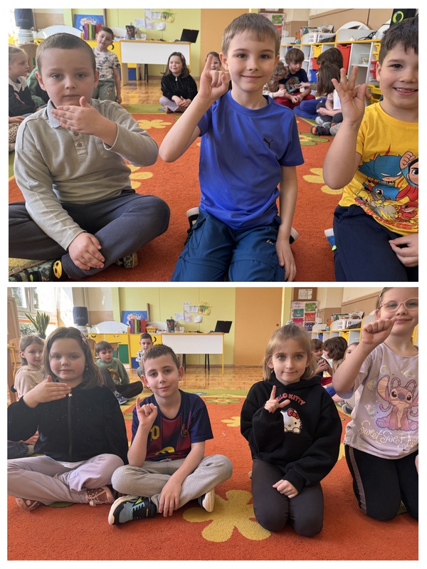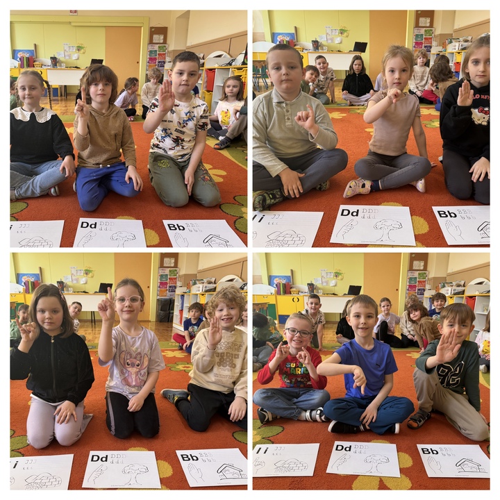 Dzieci poznały także nowe litery: D, I, B oraz sposoby ich migania. Na zakończenie ćwiczyły miganie krótkich wyrazów zwierających te litery.