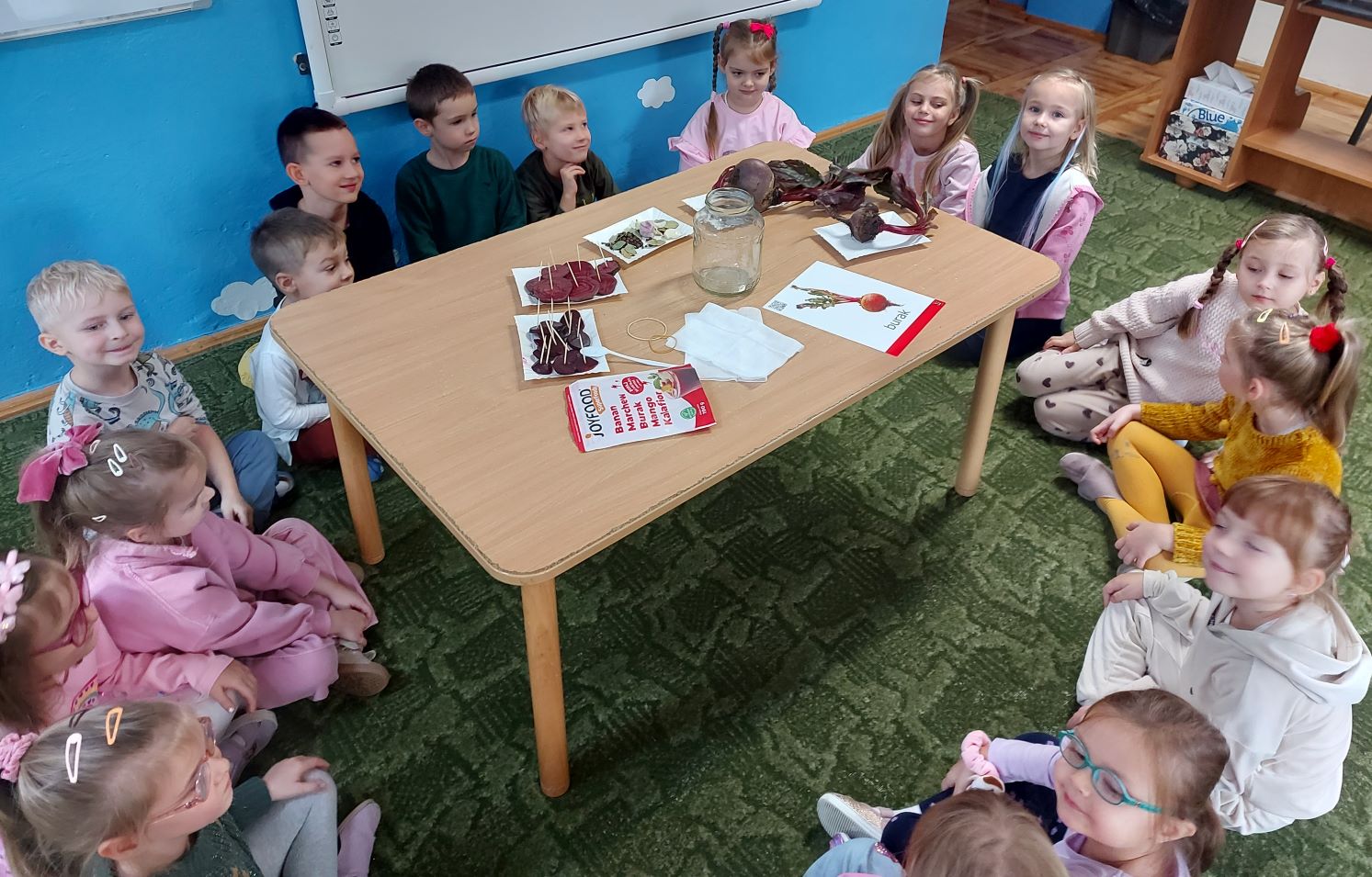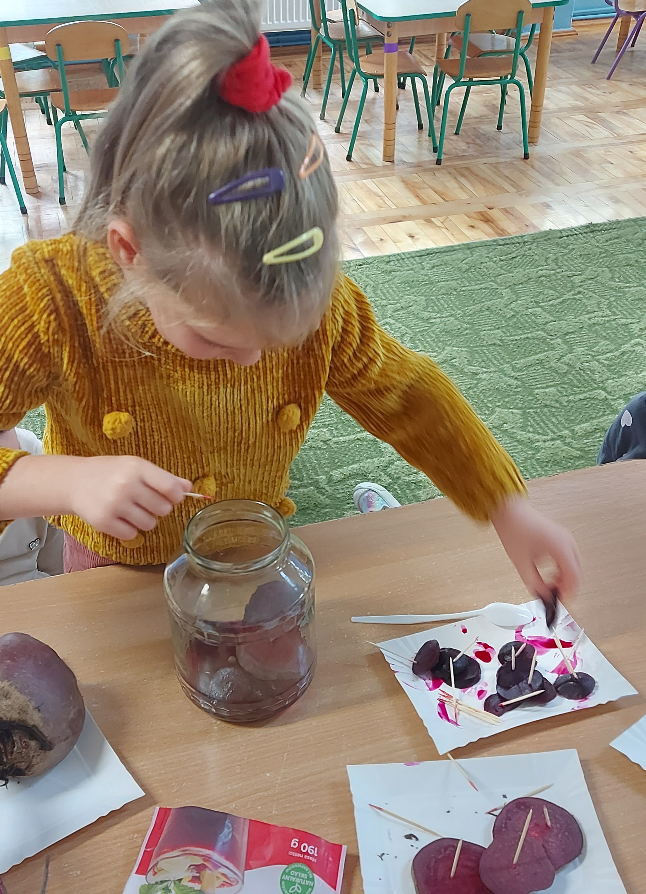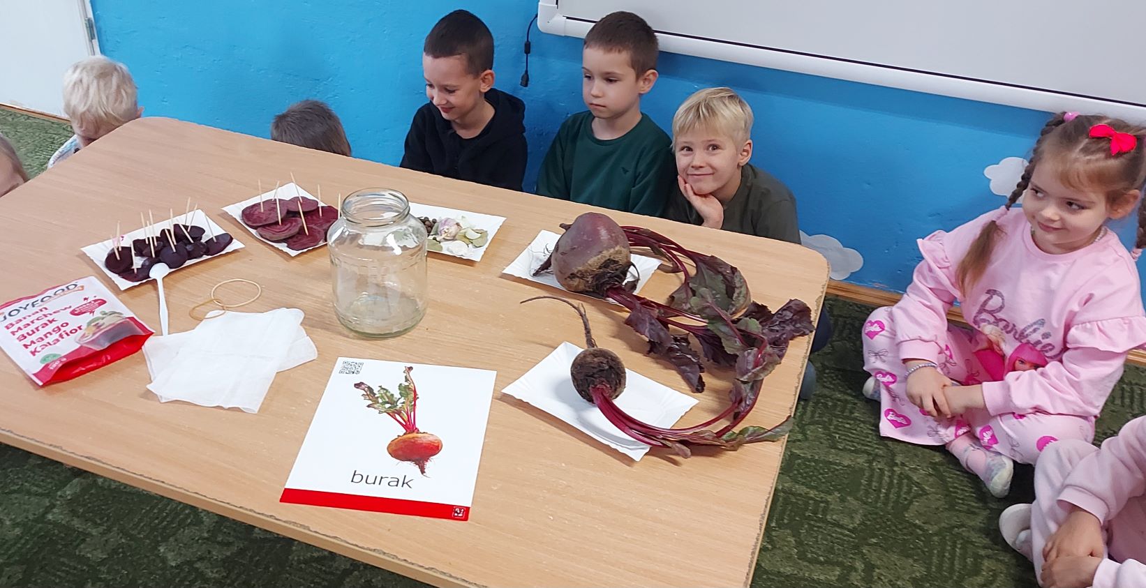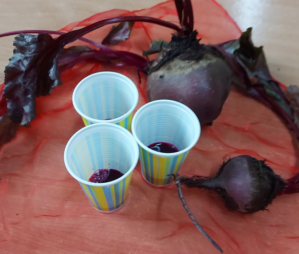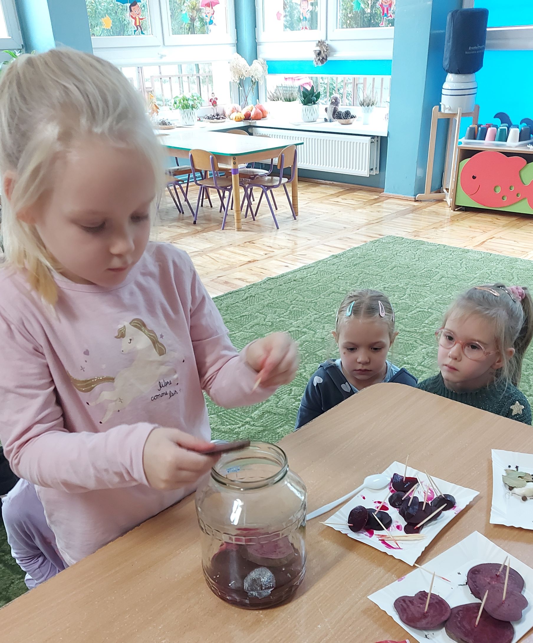Przedszkolaki w ramach działań związanych z promocją zdrowia w naszym przedszkolu przygotowały bogaty w witaminy i bardzo zdrowy zakwas buraczany.