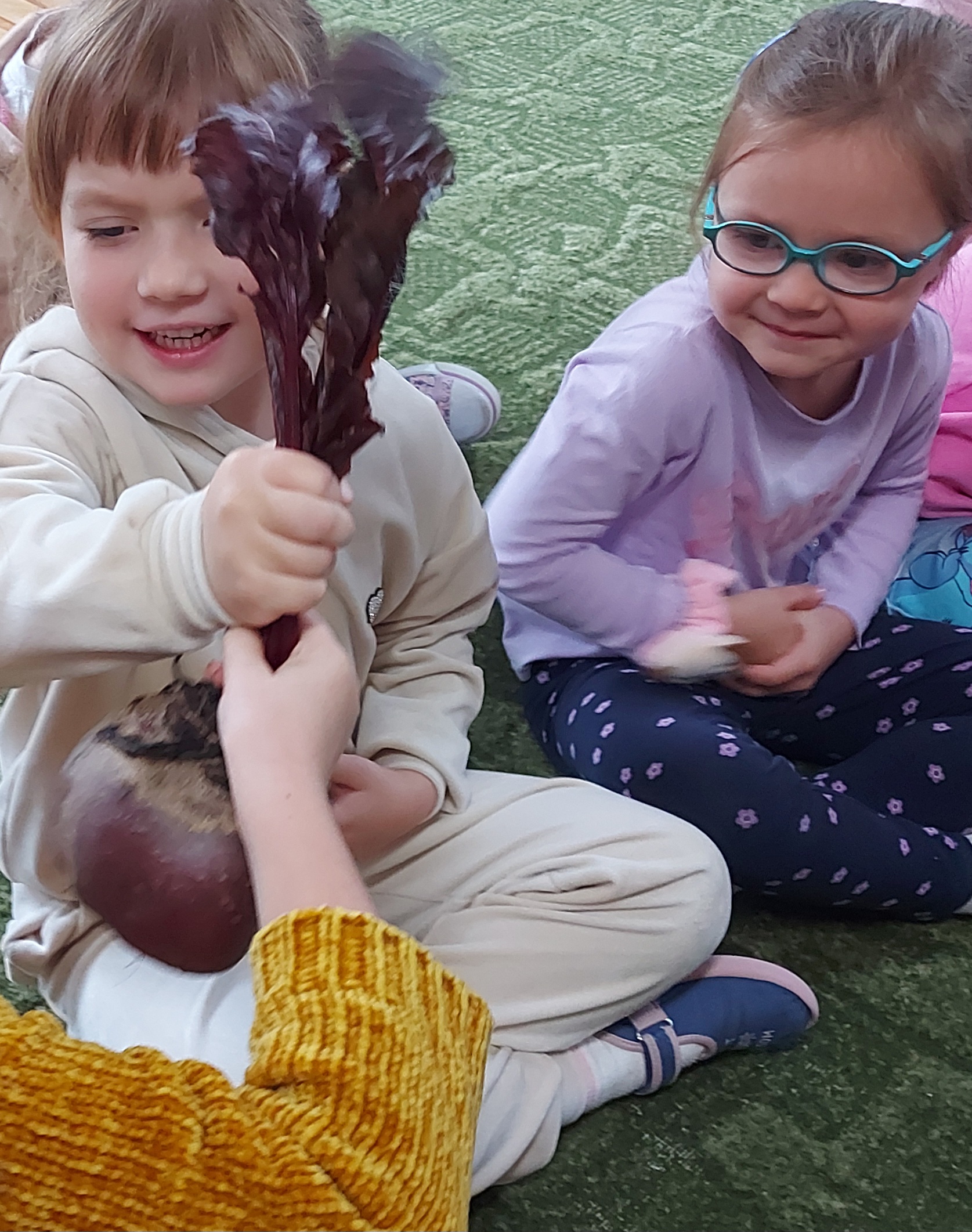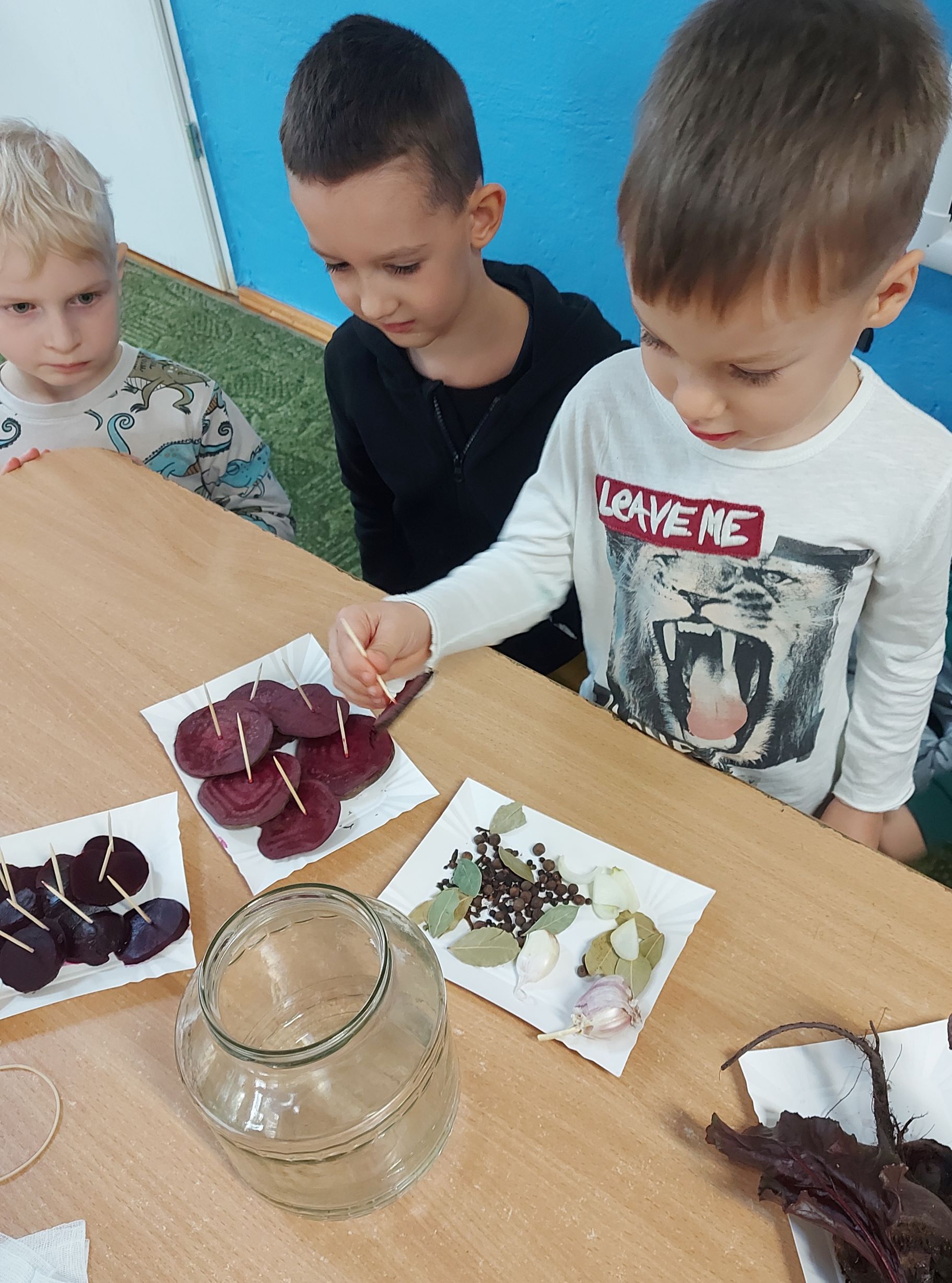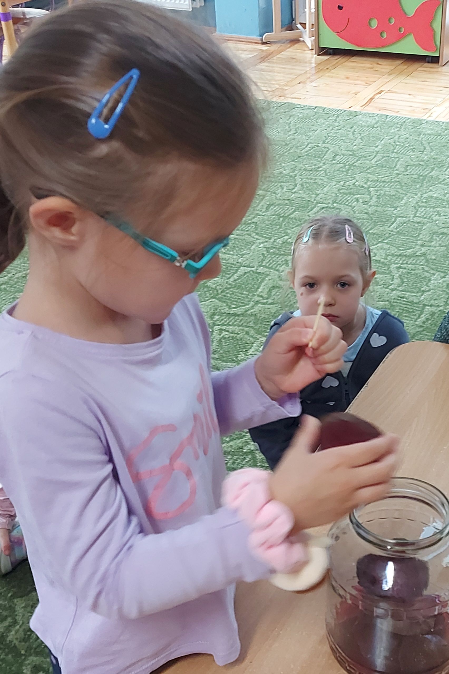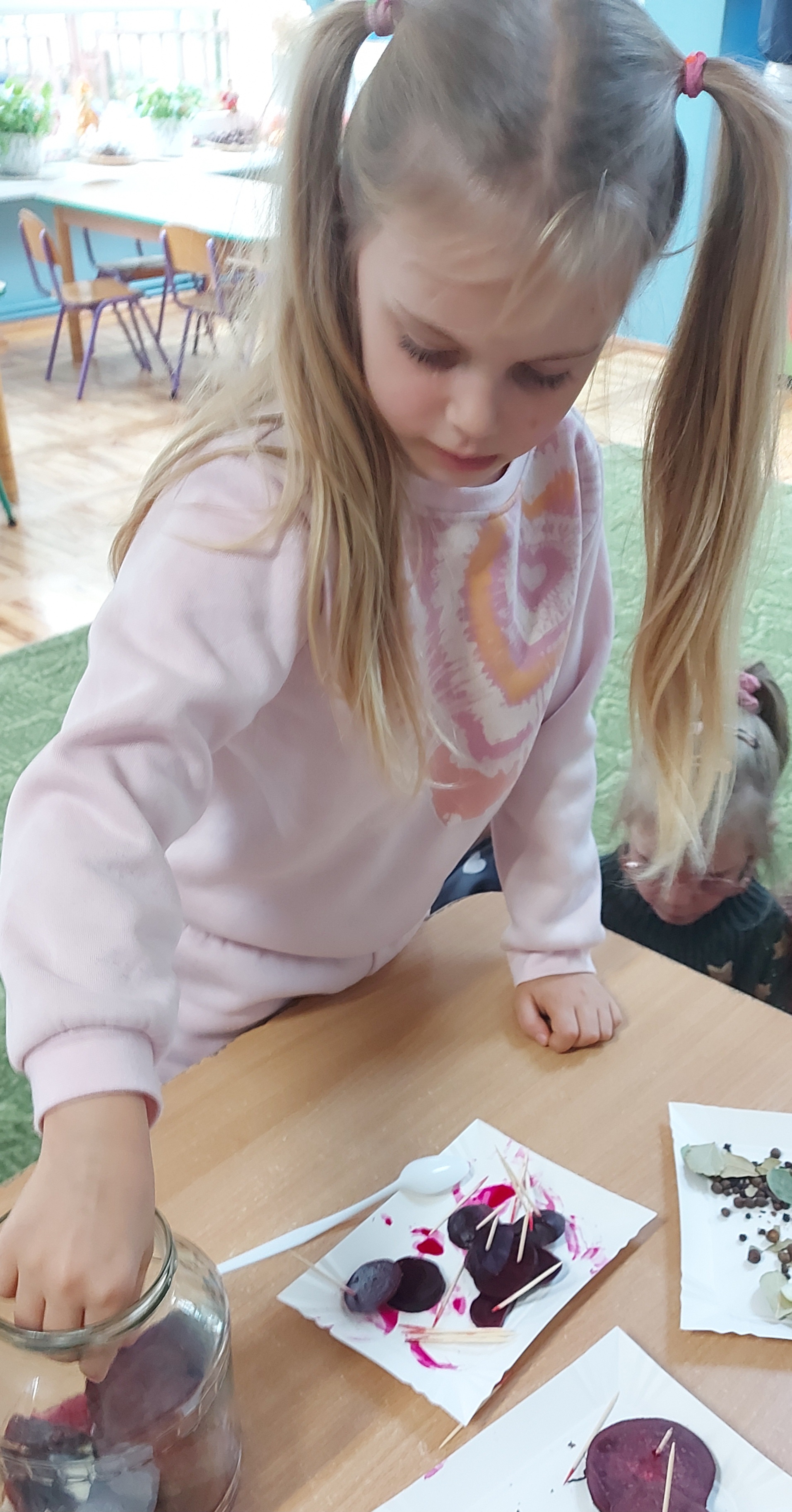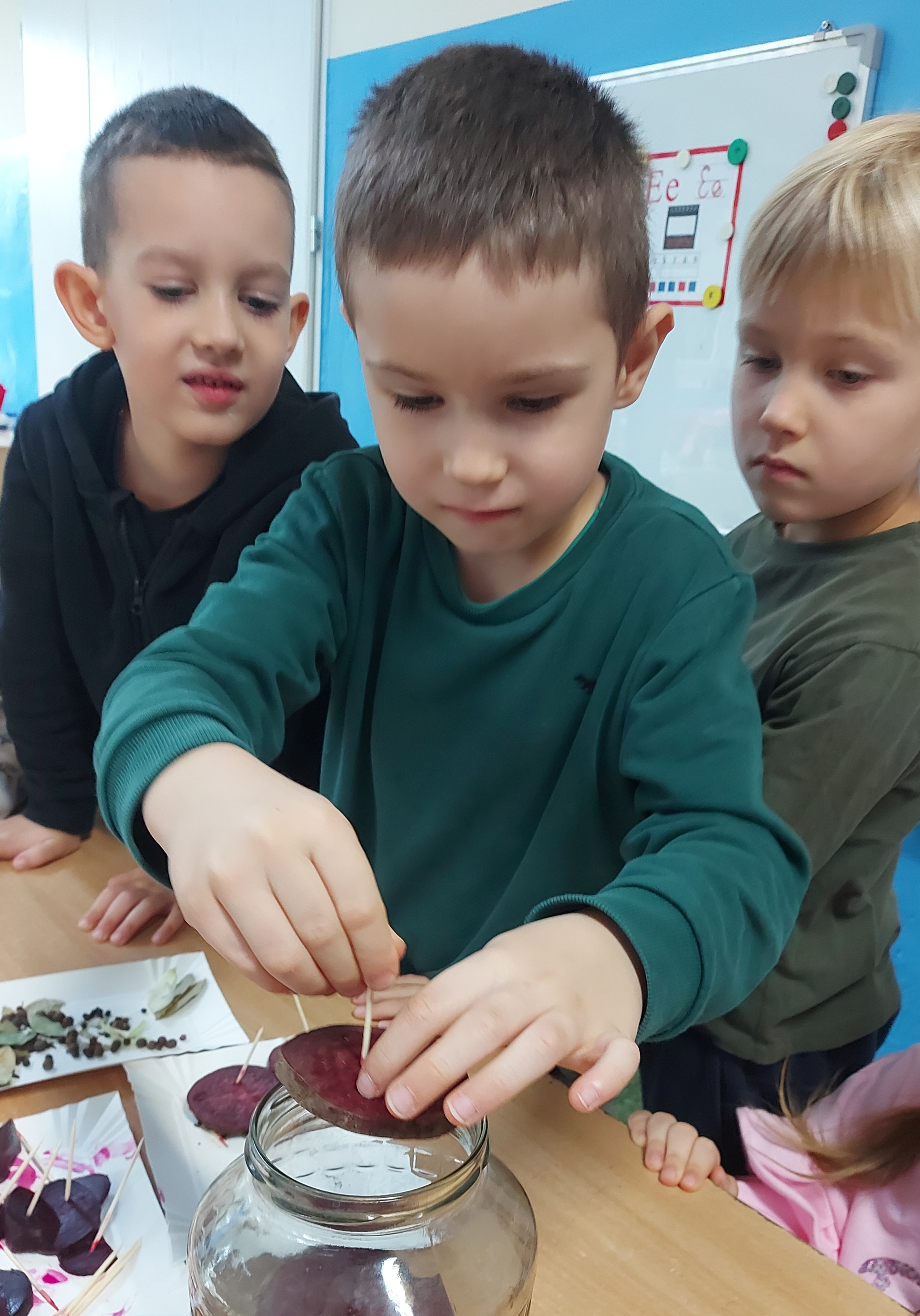 Przedszkolaki w ramach działań związanych z promocją zdrowia w naszym przedszkolu przygotowały bogaty w witaminy i bardzo zdrowy zakwas buraczany.